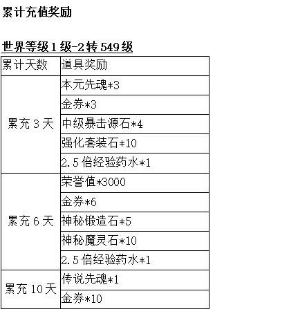 玩家等级1~1转399:祝福宝石*10、灵魂宝石*5、1000W金币、高级攻击源石*1