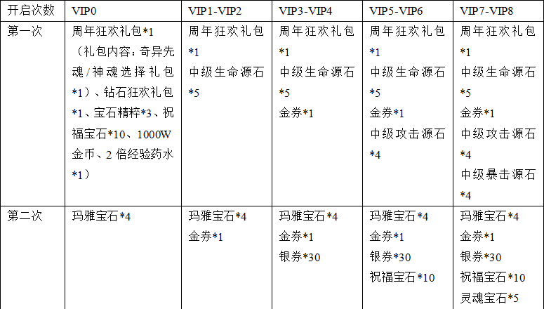 3. 活动期间通关血色城堡、恶魔广场、戒灵深渊、世界或VIPBOSS均有机会得到周年金券